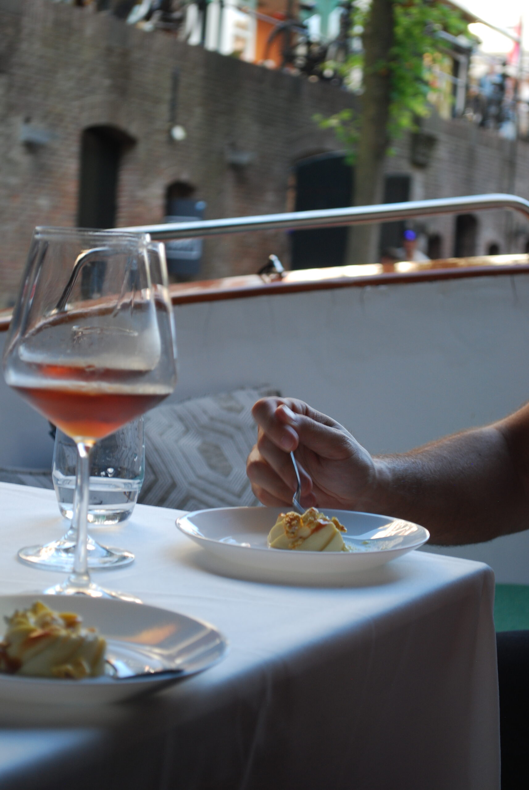 Utrecht really is a beauty and to experience it on the canals all while enjoying a three course of desserts, wines and great conversation. This menu I was really proud to share with those that attended. The first dessert I have been working on it for a while and struggled with getting to this point of being able to serve it. I has quickly become one of my favourite desserts that I have made so far. The one thing that I would change is how the Basil is added to the dish, I fried the basil to get it crunchy but I think I should have candied it instead. I’ll be doing that next time !